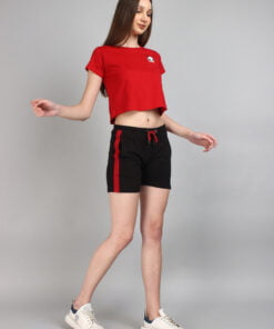 This crop top and shorts combo is sure to become a favorite in your summer wardrobe. So why wait? Order your Cotton Women’s Red Crop Top and Black Shorts set with Panda print today and experience the ultimate in summer comfort and style!